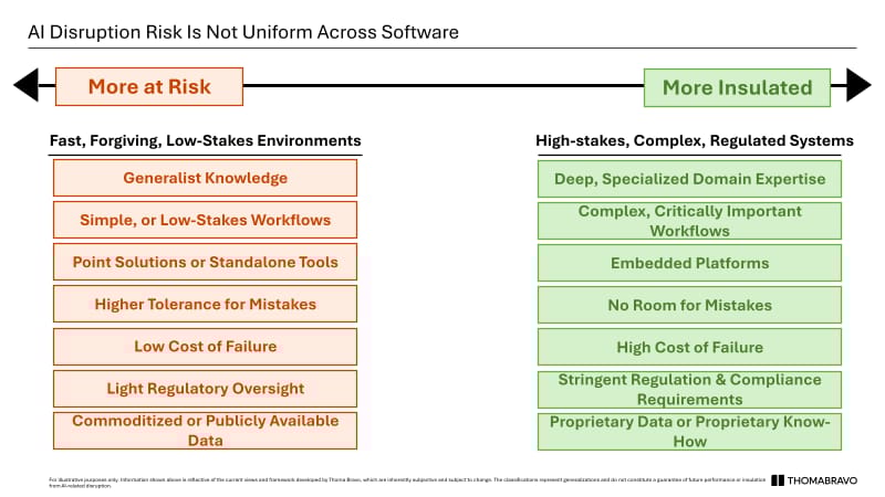What Thoma Bravo's analysis adds — regardless of where you come out — is a useful filter. Not all software is the same category of risk. The market has been pricing it that way. The firms writing the largest checks in the space are telling LPs explicitly that the market has it wrong.